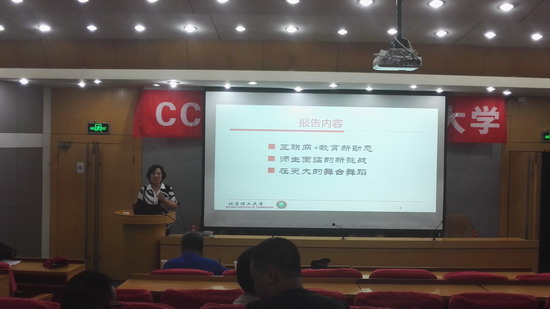 杨士强教授首先以幽默的方式开场,向我们介绍了CCF的相关情况。接着,杨教授紧紧围绕主题,从paper为什么重要谈起,分析了什么是好paper。进而从实际出发,帮助学生理清写论文与做系统、搞技术哪个更重要,要求学生有自己的学术追求,全面提高自己的综合能力。李凤霞教授从互联网+教育新动态谈起,引出MOOC的概念及其在个性化教育方面做出的贡献,提出在新的互联网时代,我们要充分利用资源来广泛学习。同时,李教授也指出了在互联网+教育新动态的背景下,师生面临的新挑战,从最初的“老师讲,学生听”的模式转为“自由学习,共同参与”的模式,有利有弊,抓住机会,实现资源利用的最大化。最后,李教授提出一个虚拟实验工场的概念,并介绍了这一平台在很多学校已被投入使用。