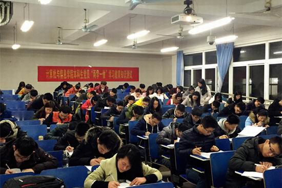 考前,毕业班辅导员黄晨指出,考试的目的就是要体现出“以考促学”“以学促干”,以此来检验前段时间的学习成果,推动下一步学得更扎实、更牢固,从而把“两学一做”学习教育引向深入。她要求,所有参考人员要在考中找差距,通过考试正视自己的不足,然后迎头赶上,向组织交上一份满意的试卷。
