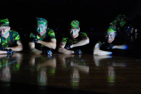 我院节目《出击》用充满蓬勃的热情和磅礴的气势的舞蹈,抒发了悲壮豪迈的英雄气概,表现了我们的军人不畏牺牲、甘于奉献的奉献的精神,用自己的血肉之躯,铸成保家卫国的钢铁城墙。演出现场气氛热烈,不时爆发出阵阵热烈的掌声。为了献上完美的演出,16级的同学们排练了一个多月的时间,不顾胳膊和膝盖的酸疼,付出了巨大的努力。这震撼人心的舞蹈是同学们汗水和心血换来了的优秀成果,最终我院荣获一等奖的好成绩!