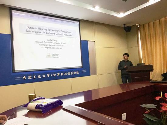 2016年12月5日下午,澳洲国立大学梁维发教授应学院邀请,在逸夫楼408会议室做了题为“Dynamic Routing for Network ThroughputMaximization in Software-Defined Networks”的学术报告。报告会由太阳集团tyc5997院长助理樊玉琦老师主持。来自我院分布式控制研究所、网络与信息安全研究所、计算机系统结构研究所的部分师生参加了此次报告会。
