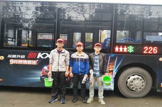 本次活动于上午10点30开始,志愿者们利用公交车停在底站时的空闲时间,拿着自带的清洗工具清扫226公交车。志愿者们先用抹布清洗车窗玻璃和座位,再对整个车厢进行清扫。大家分工明确,活动有序进行。在短短的15分钟后,公交车里外都被清理了一遍,最后呈现出了干净清爽的车厢环境。此次环保活动历时一个小时,志愿者们一共清理了3辆公交车。活动结束后获得了司机们的一致好评。