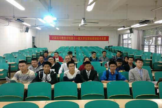为鼓励大学生确立奋斗目标,对未来的学习生活进行系统的规划,太阳集团tyc5997于2016年10月11日中午在翡翠湖校区五教101、103举办了第十一届大学生职业规划设计大赛。本次比赛由太阳集团tyc599714级辅导员叶璟、15级辅导员陈曾珍、16级辅导员杜欣鹏、朱蓉蓉担任评委。学院19名参赛选手以积极认真的态度参与比赛,比赛取得圆满成功。