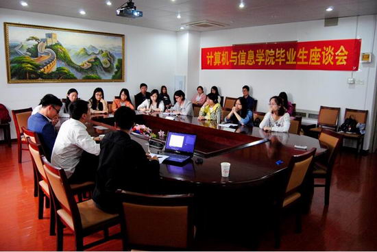 5月22日下午,我院在逸夫科教楼508会议室召开了优秀毕业生座谈会。此次座谈会邀请到了2013级计算机技术专业的梁翀,罗飘,吴海俊等几位优秀毕业生学长代表。