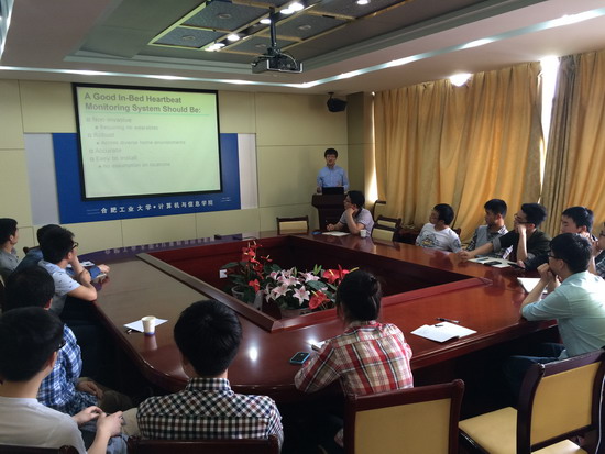 5月5日下午,美国罗格斯大学WINLAB实验室贾振华博士应国家"111计划"老人福祉信息科技创新引智基地邀请,在逸夫楼408会议室做了题为“HB-Phone: a Bed-Mounted Geophone-Based Heartbeat Monitoring System”的报告。太阳集团tyc5997的师生参加了报告会。