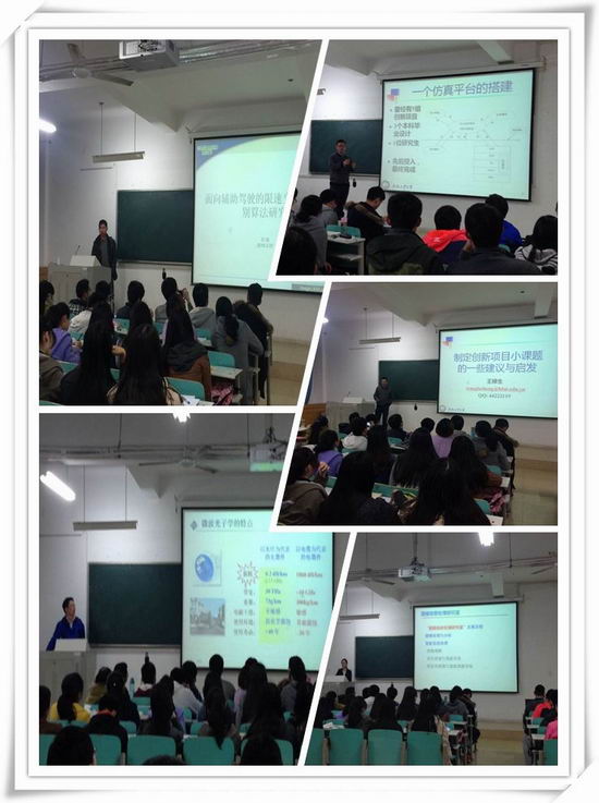 3月31日晚上,学院2016年度大学生创新创业训练项目宣讲动员大会在翡翠湖校区顺利举行。按照学院领导的要求,本次宣讲动员大会前期做了周密的安排,和往年的宣讲会不同的是让各个研究所推荐科研团队负责人或者是感兴趣的教授参与了本次宣讲动员大会。考虑到专业的差异性,为了取得更好的宣讲效果,本次宣讲会按照专业分组进行宣讲动员。在翠五教201举行的计算机科学与技术专业和本硕班的宣讲会,参加的老师有:路强、李琳、孙晓、邵堃、薛峰、徐本柱,由路强院长助理主持;在翠五教204举行的电子信息工程专业的宣讲会,参加的老师有:齐美彬、刘学亮、董张玉,由电子系齐美彬主任主持;在翠五教102举行信息安全专业的宣讲会,参加的老师有:胡东辉、周健,由网络安全所胡东辉所长主持;在翠七教303举行通信工程专业的宣讲会,参加的老师有:孙锐、王禄生、张骏、程旭升,由通信工程系副主任孙锐主持。本次宣讲会,学生和老师进行了良好的互动,学生了解了老师的研究方向,将会根据自己的兴趣合理选择自己要申报的项目和指导教师,这将会对我院创新创业项目的申报质量和完成质量的提高起到很大的推动作用。本次活动得到了学院团委的大力支持。