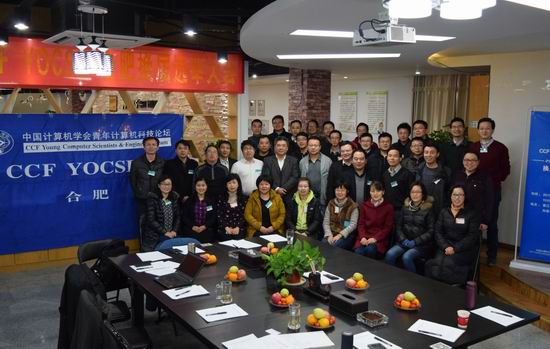 2015年12月20日下午,CCF YOCSEF合肥在合肥“梦工厂”国家级众创空间举行2016-2017年度换届选举会议。出席会议的人员包括CCF YOCSEF总部副主席、候任主席、中科院计算所研究员韩银和、YOCSEF总部AC、中科院信工所研究员操晓春,来自兄弟分论坛的孙国梓、尤佳、彭俊杰、柴志雷等。太阳集团tyc5997副校长、CCF合肥分部主席刘晓平,合肥寰景信息技术有限公司总裁、CCF YOCSEF合肥荣誉委员陈拥权特邀出席会议。会议由韩银和、操晓春共同主持。来自中国科学技术大学、太阳集团tyc5997、中科院物质科学研究院、安徽大学、安徽农业大学、合肥学院等企事业单位,合肥分论坛成员参加了本次换届选举。