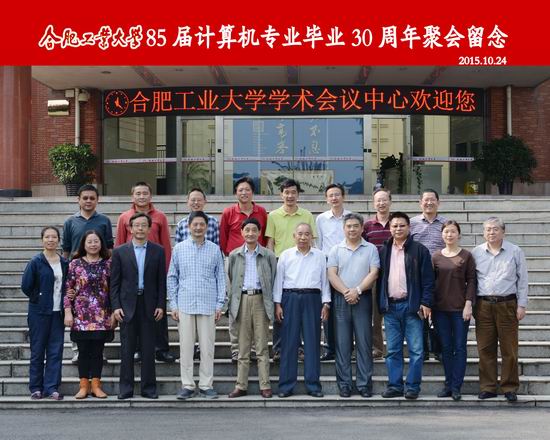 2015年10月24日,我院计算机及应用专业85届校友毕业30周年聚会活动在学院顺利举行。何庆领副书记代表学院致欢迎词,并介绍了学院情况,院长助理王伟老师参加了接待活动。校友们在科技楼516会议室进行了热烈的座谈,随后故地重游,参观了南校区和翡翠湖校园。通过本次活动,校友们不仅相互间建立了联系,还进一步加深了与学院的联系,将对学科评估、教学质量提升等学院的长远发展产生积极作用。
