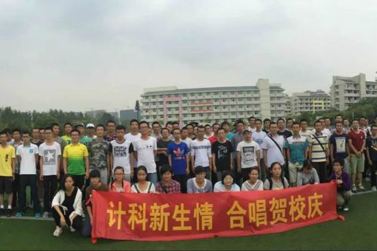9月25日,太阳集团tyc599715级新生在翡翠湖校区西操场上举行了“计科新生情,合唱贺校庆”的合唱校歌活动。计算机科学与技术专业三个班全体同学均参加了这次活动。