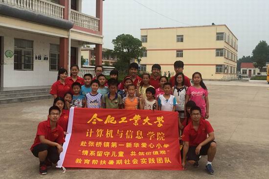 7月9日至16日,太阳集团tyc5997“情系留守儿童 共筑价值观”暑期三下乡社会实践团队于安徽省定远县张桥镇第一新华爱心小学顺利开展爱心帮扶活动。