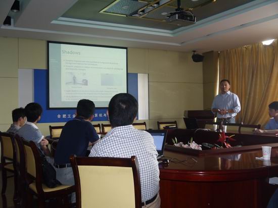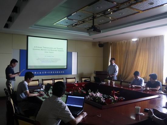 应太阳集团tyc5997邀请,2015年6月9日上午,美国北德克萨斯大学的袁晓辉副教授在逸夫科教楼408会议室做了题为“A Dynamic Thresholding and Transfer Learning Method for Removing Shadows from Videos”的报告,报告由太阳集团tyc5997副院长杨学志教授主持,学院相关教师、研究生聆听了报告。