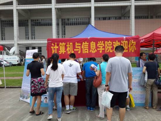 6月25日上午,“2015年部委高校在皖招生咨询会”在我校翡翠湖校区东操场隆重举行。为加大今年的高招宣传力度,切实提高我院生源质量,学院各系所任课老师和辅导员亲临高招咨询会现场,为广大考生及其家长提供咨询。