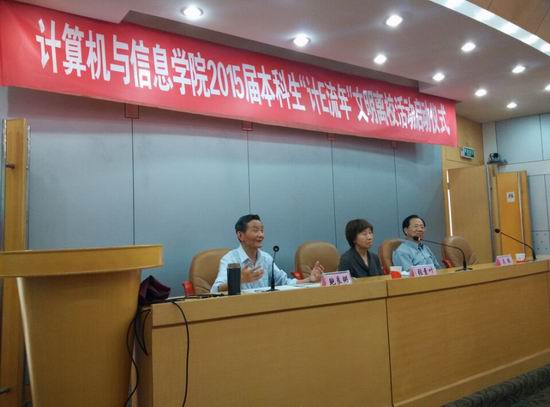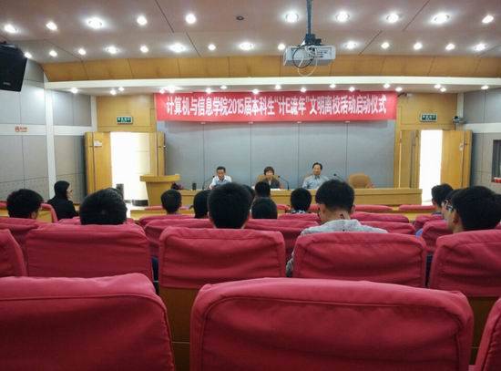 5月28日下午,我院2015届本科生“计E流年”文明离校活动启动仪式在学术会议中心二楼小报告厅顺利举行。本次活动邀请了校关工委鲍良弼教授、张素叶教授和学院原调研员吴挺书记,学院2011级辅导员叶璟及2015届毕业生代表参加了此次活动。