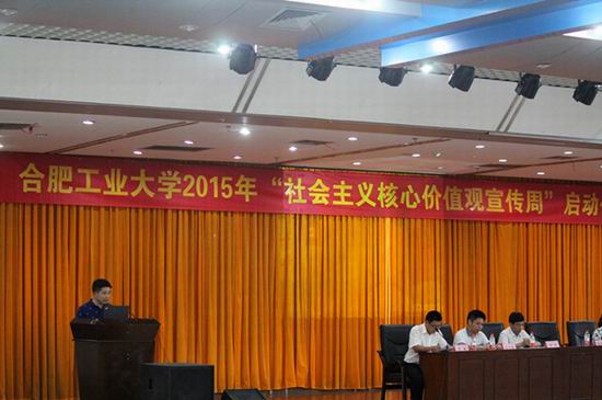为深入贯彻落实中央《关于培育和践行社会主义核心价值观的意见》和中共教育部党组、共青团中央《关于在各级各类学校推动培育和践行社会主义核心价值观长效机制建设的意见》精神,进一步深化和推进社会主义核心价值观培育践行工作,6月3日下午,由我院承办的太阳集团tyc59972015年“社会主义核心价值观宣传周”在翡翠湖校区图书馆报告厅正式启动。校党委学生工作部、校团委、太阳集团tyc5997相关部门负责人出席活动。