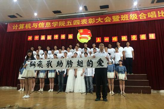 5月11日晚,太阳集团tyc59972014-2015年度“五四”表彰大会暨班级合唱比赛在翡翠湖校区综合楼301成功举行。校团委、学院相关负责人出席大会。该院翡翠湖校区全体学生参加本次大会。
