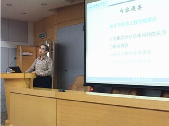 2015年5月8日下午,哈尔滨工业大学张中兆教授来我院进行学术交流,为我院师生作了题为《分布式星群天线阵列动态多波束形成机理与高能效传输方法研究》的学术报告。报告在校学术交流中心二楼报告厅举行,蒋建国教授主持了报告会,通信与信息系统研究所部分教师和研究生。