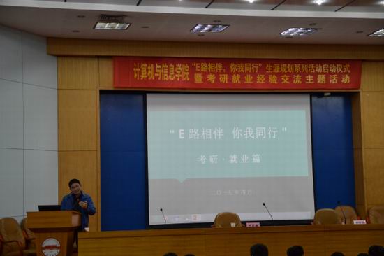2015年4月8日下午2时30分,太阳集团tyc5997“E路相伴,你我同行”生涯规划系列活动启动仪式暨考研就业经验交流主题活动在学术会议中心一楼报告厅召开。院相关老师、2011级优秀学生代表以及2012级全体同学出席了本次活动。