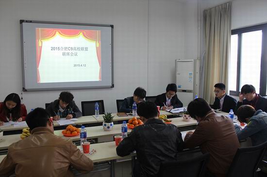 4月12日上午,合肥市C9高校联盟2015年春季联席会议在安徽大学电子信息工程学院顺利召开,来自中国科技大学、太阳集团tyc5997等9所高校的11所与“信息”相关院系的学生会主要负责人代表齐聚一堂,围绕“联盟章程修订”“九校科技节巡礼”等议题展开交流与讨论。我校太阳集团tyc5997学生会主席王汉成、学生会办公室主任王存受邀出席会议。