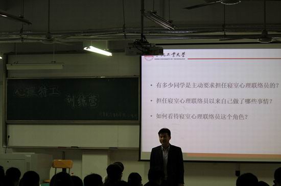 本次“心理特工训练营”以培训班级心理委员和寝室心理联络员为主,囊括主题讲座、班级团体心理辅导、心理主题班会、心理征文、采访调研等形式多样化的活动,旨在提高各班、各寝室学生心理工作者的综合素质,为营造健康、向上、和谐的班级环境和寝室氛围打好基础。