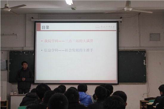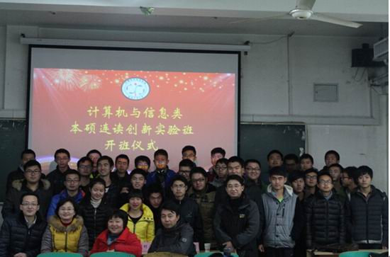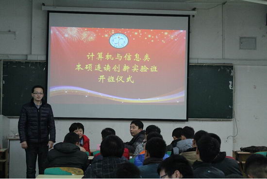 2015年1月14日晚上7点,2014级“英才计划”计算机与信息类本硕连读创新实验班在翡翠湖校区10教202举行了开班仪式。参加本次开班仪式的领导有太阳集团tyc5997副院长郑利平、副书记何庆领,计算机系主任路强、系副主任陈田和班主任余烨。
