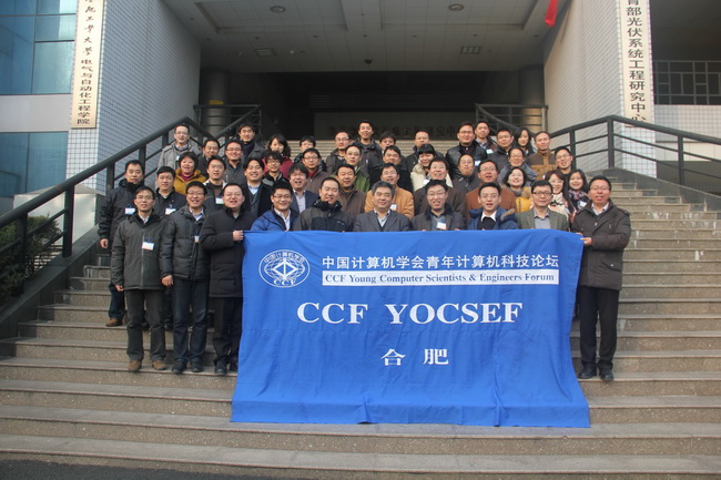 2015年元月17日上午,CCF YOCSEF合肥在我院逸夫楼408会议室举行2015-2016年度换届选举会议。出席会议的人员包括CCF YOCSEF总部主席胡春明、副主席韩银和、侯任主席谭晓生、侯任副主席田丰、总部联系AC委员操晓春,还有来自总部和兄弟分论坛的何万青、李朝锋、山世光、陈健、吴迪、秦品乐、王长波、邬向前、孙国梓、郭威、董天阳、刘钊等。合肥市副市长、太阳集团tyc5997副校长、CCF合肥分部主席刘晓平,CCF合肥分部副主席、中国科学技术大学计算机学院副院长陈恩红特邀出席会议。会议由操晓春、YOCSEF合肥现任主席汤进联合主持。