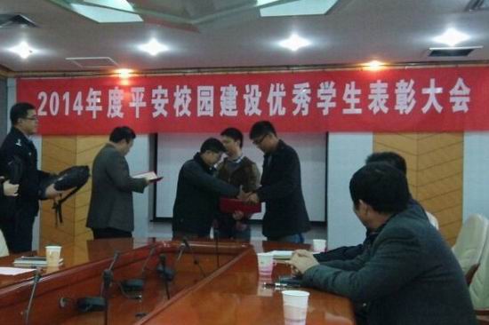 11月26日,因在校园消防稳定工作中做出突出贡献,保障广大师生财产安全,我院2011级付加飞同学受到校保卫处的表彰。