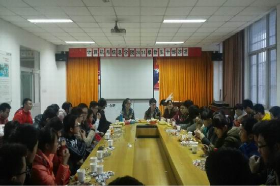 12月3日下午4时,我院“2014级新生干部沙龙”活动在翡翠湖校区沙盘体验中心举行。院团委副书记黄晨老师,六位2013级优秀班级、社团干部,14级全体学生干部参与了本次活动。本次活动由2014级辅导员宋燕老师主持。