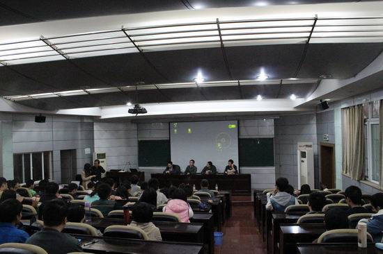 本次交流会我院诚邀中国科技大学研究生江义成、詹晨迪、朱唯鑫、薛军、陶伟等七人与我院学生进行经验交流。其中,朱唯鑫、薛军与江义成三位研究生本科就读于我校。中国科技大学研究生联合会成员主持了此次交流会。