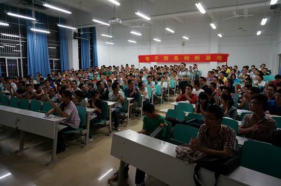 2014年10月12日晚,校电子信息创新基地于工大翡翠湖校区1教202举办了对全校2014级新生的宣讲会。本次宣讲会旨在为2014级新生介绍电子信息创新基地的组织、管理和运行模式等相关情况,使得2014届的同学们对电子信息创新基地有一个较为全面的了解。出席本次会议的有2014级辅导员和基地老师以及现在的创新基地负责人陈飞扬,金志杰,胡健等同学。