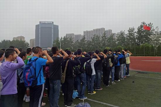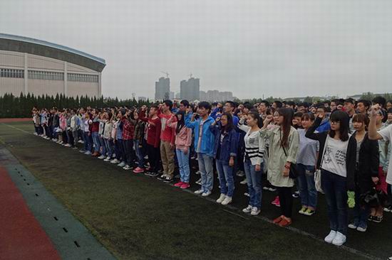 升旗仪式结束后,2013级学生代表刘冠男同学宣读“致敬英烈 爱我中华”倡议书,并带领全体同学宣誓:“我们一定会继承革命先烈遗志,发扬艰苦奋斗的优良作风,谨记‘厚德、笃学、崇实、尚新’的校训,做先进文化的传播者,时代精神的弘扬者。诚实勇敢,自律自强;奋发有为,誓做栋梁;振兴中华,再造辉煌!”