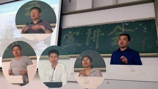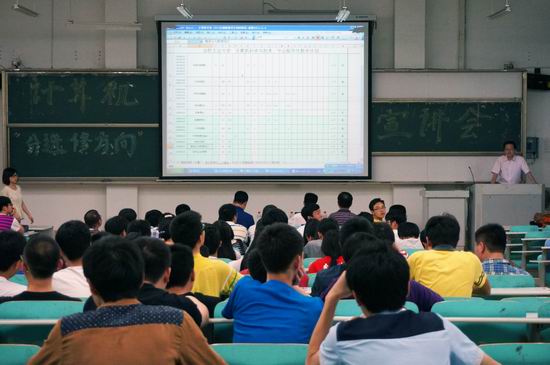 2014年5月24日晚,计算机系在翡翠湖校区翠一102教室举行了2012级计算机系本科生选修方向宣讲会。宣讲会由计算机系主任、应用所所长路强主持,系副主任魏振春、系副主任郑淑丽、软件所所长邵堃、系统所所长欧阳一鸣、情感所所长孙晓出席了会议。