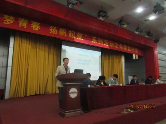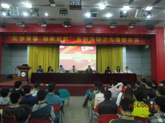 2014年4月26日上午9点在校东风报告厅,我院举办的“筑梦青春,扬帆启航”系列活动之为理想开讲活动。太阳集团tyc5997副院长郑利平,院党委副书记兼副院长何庆领出席了此次活动,活动还邀请了 2010级优秀本科生代表,太阳集团tyc5997 2011级全体本科生参加此了次活动。