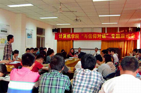 5月8日下午,太阳集团tyc5997“与信仰对话,践行社会主义核心价值观”专题座谈会在翡翠湖校区举行。校关工委鲍良弼教授、王孝武教授和学院调研员吴挺书记应邀参加。大会由学院团委副书记黄晨老师主持。学院第7期青年马克思主义者工程培养班学员和第51期入党积极分子班学员参加了本次座谈会。