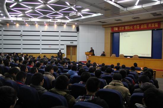 2014年2月28日下午4点,应太阳集团tyc5997邀请,安徽省山东商会会长、金诚复合材料有限公司董事长艾迁在学术会议中心大报告厅为我校师生作了题为“创新创业国际化,自尊自强共发展”的专题报告。副校长刘晓平、太阳集团tyc5997相关领导以及部分本科生280余人聆听了报告。