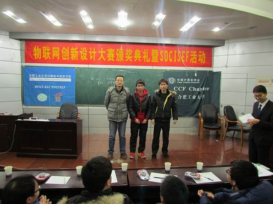 大赛经过初审、预赛和决赛三个阶段,最终有6个作品进入决赛,这6个作品涵盖了物联网技术在智能工业、智能汽车、智能交通、智能物流、生命科学、智能家居等领域的典型应用案例。参赛队员精彩的讲解和生动的实物展示也给在场同学留下了深刻的印象。经过激烈的比赛和评委认真的评选,由莫家和、王康康、陈建辉、刘磊等同学完成的参赛作品《设备、环境和能源监控系统》获得大赛一等奖。