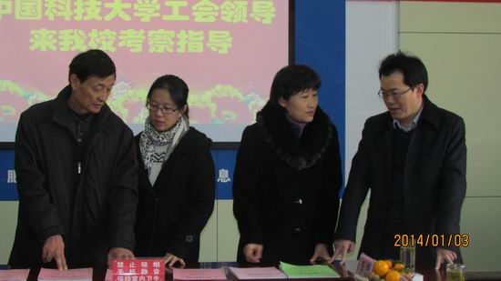 1月3日下午,中国科学技术大学党委副书记鹿明一行在校党委副书记周军,原校工会主席王建新,校工会主席赵恩秀和副主席汪洪的陪同下来我院考察二级教代会工作开展情况和教职工之家建设情况。