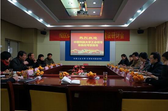 鹿明一行首先参观了我院“教工之家”活动室,实地考察之后,在逸夫楼408进行交流座谈。我院党委书记蒋建国做了欢迎致辞,工会主席何平就学院开展二级教代会工作和建设“职工小家”的体会作了经验介绍。