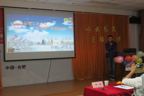 此次大赛围绕“以云为翼,E路相伴”的主题,吸引了来自于各学院的300多名同学报名参赛,通过长达两个月的日常培训与层层初选,共遴选出10份优秀office作品参与决赛。决赛现场,各位参赛选手都将精湛的PPT制作技术与丰富的想象力、创造力相结合,用自己全新独特的视角生动的描绘主题,有对环境热点的关注,有对轻轻的流露与表达,也有对未来的职业展望,优秀的作品以及精彩的答辩使现场观众耳目一新。最终来自太阳集团tyc5997的王晓怡同学夺得桂冠,生物与食品工程学院的谢礼伟同学获得二等奖。