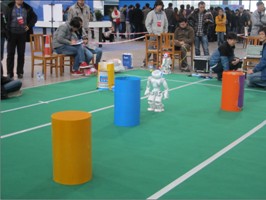 单人舞蹈和双人舞蹈国内参赛学校数量最多的项目,国外高校悉数参赛,是比赛竞争最为激烈的项目之一,我校参赛队员平时做了大量准备工作,也引入了很多创意性想法。双人舞以优美的梁祝开头,2个机器人流畅协调的动作把梁祝的相亲相爱表现得淋漓尽致;后一套整齐划一动感地展示了机器人的激情,整个过程,机器人动作收放自如,动作充分协调,和音乐的节奏配合得非常完美,最终得到裁判委员会的认可,获得冠军。单人舞蹈是其中为数不多既引入较多高难度动作又有很多创意的高校之一,但高难度也意味着失误可能较高,非常可惜我校机器人“选手”在比赛中出现还是出现了失误,最终遗憾地获得三等奖。障碍跑比赛项目考验的是机器人对障碍物和目标的识别准确性,同时机器人还需要做出合理的路径规划,我校代表队最终获得了季军。短跑比赛项目较以往比赛增加了赛道的长度,并新规定机器人摔倒即比赛终止,因此每支参赛队都要在稳定性和速度之间要做出抉择,比赛给予每次参赛队伍2次比赛机会,我校参赛队2次都成功地完成了比赛,最终在30多支参赛队伍中获得第四名的成绩。