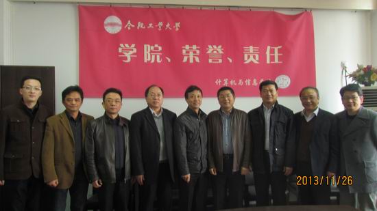 2013年11月26日,苏州大学计算机科学与技术学院胡新华书记、刘青山院长、李凡长副院长一行访问我院。学院蒋建国书记、杨学志副院长接待了来访的客人,计算机科学与技术系、电子信息工程系和通信工程系系主任也同时出席。